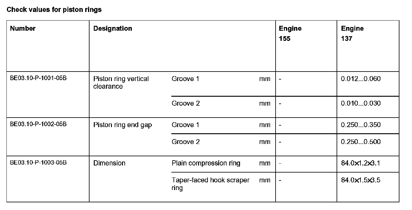 BE03.10-P-1000-05B Check values for piston ringsCheck values for piston rings: