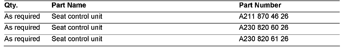 If you receive customer reports in the above model vehicles regarding the easy entry/exit feature for the seat position not functioning, this may be due to prior replacement of the instrument cluster (A1) on vehicles up to production date 06/01/2005. This can be corrected by installing one of the following seat ECU (N32/1 or N32/2) part numbers and programming the ECU with SDS release 09/06 or newer.