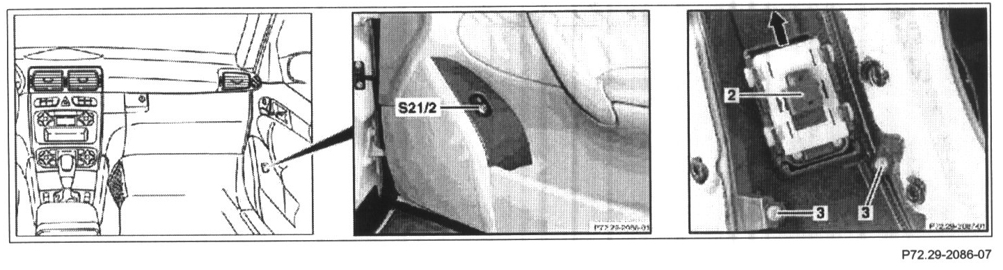 4 Unclip front passenger-side power window switch (S21/2), remove