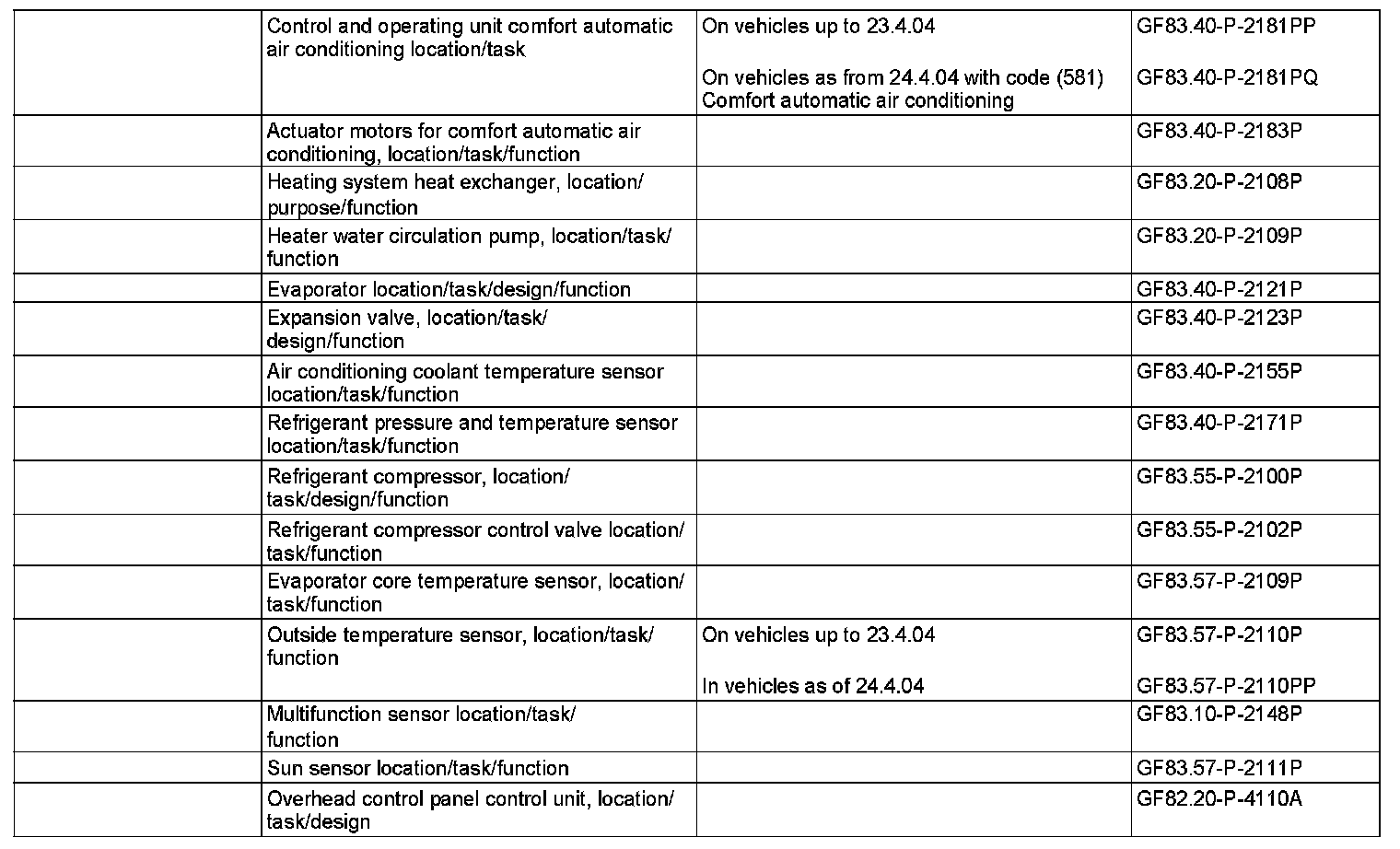 - with CODE (581) Automatic air conditioning