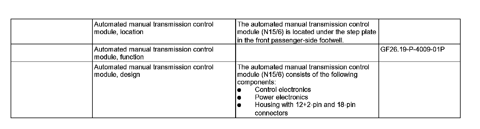 GF26.19-P-4009P Automated Manual Transmission Control Module, Location / Task / Design