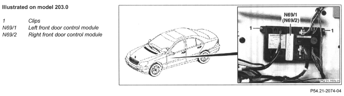 NOTE: On left front door control module (N69/1), right front door control module (N69/2).