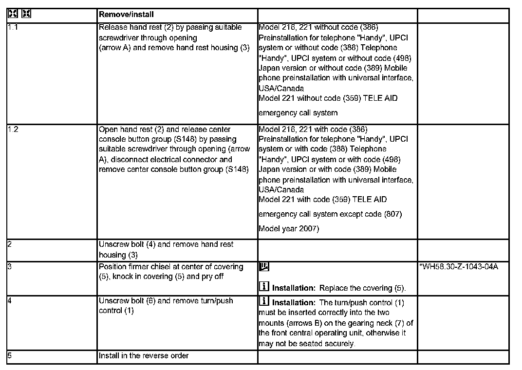 AR54.21-P-0501SX Remove/Install Turn/Push Control For Front Central Operating Unit