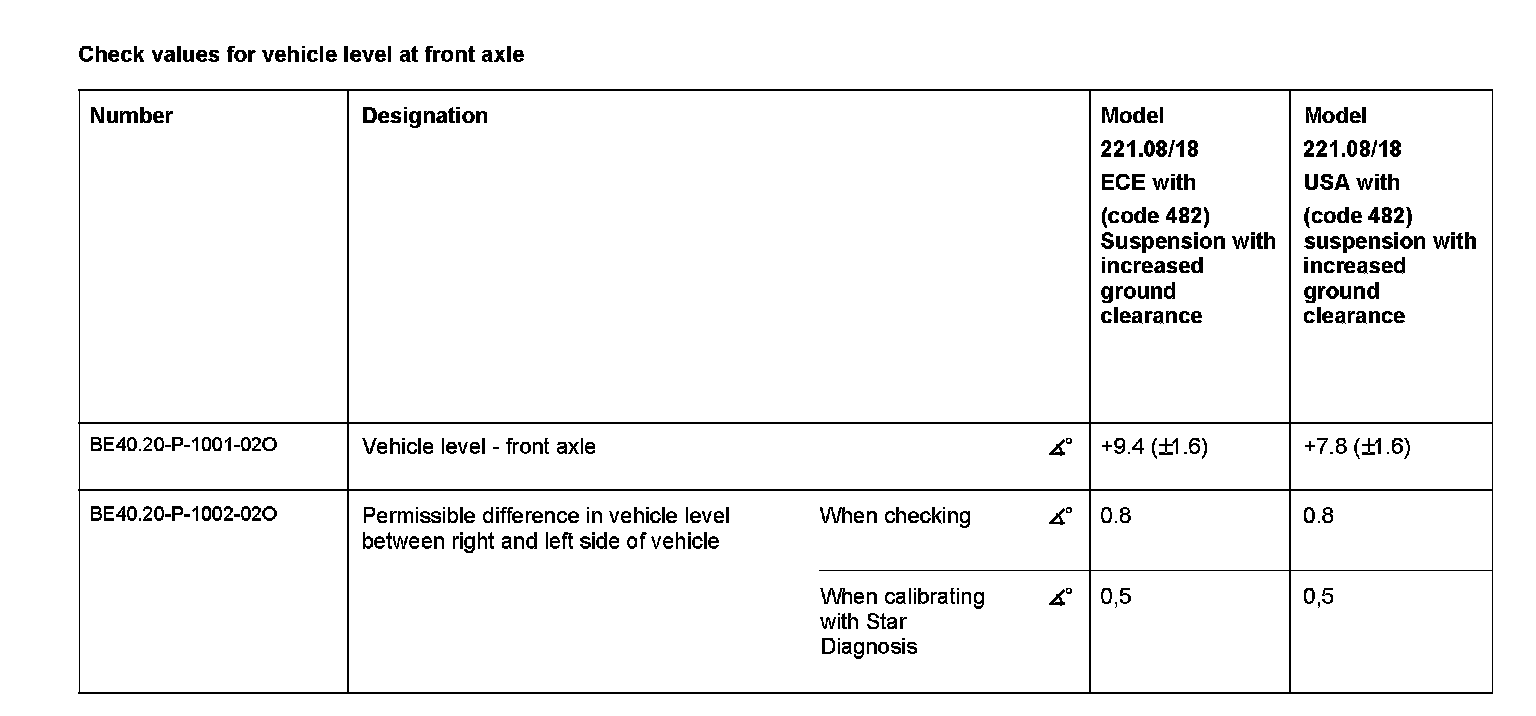 Check values for vehicle level at front axle:
