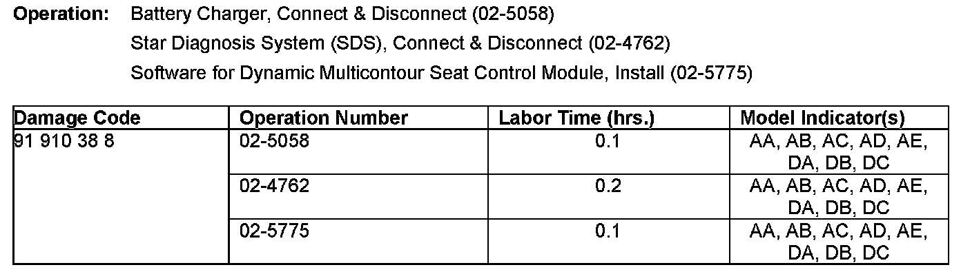 Campaign - Seat Control Module Software Update