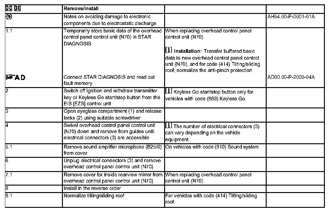 AR82.20-P-1000SX Remove/Install Overhead Control Panel Control Unit