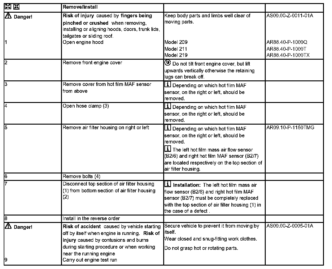 AR07.07-P-1453TMG Remove/Install Hot Film Mass Air Flow Sensor