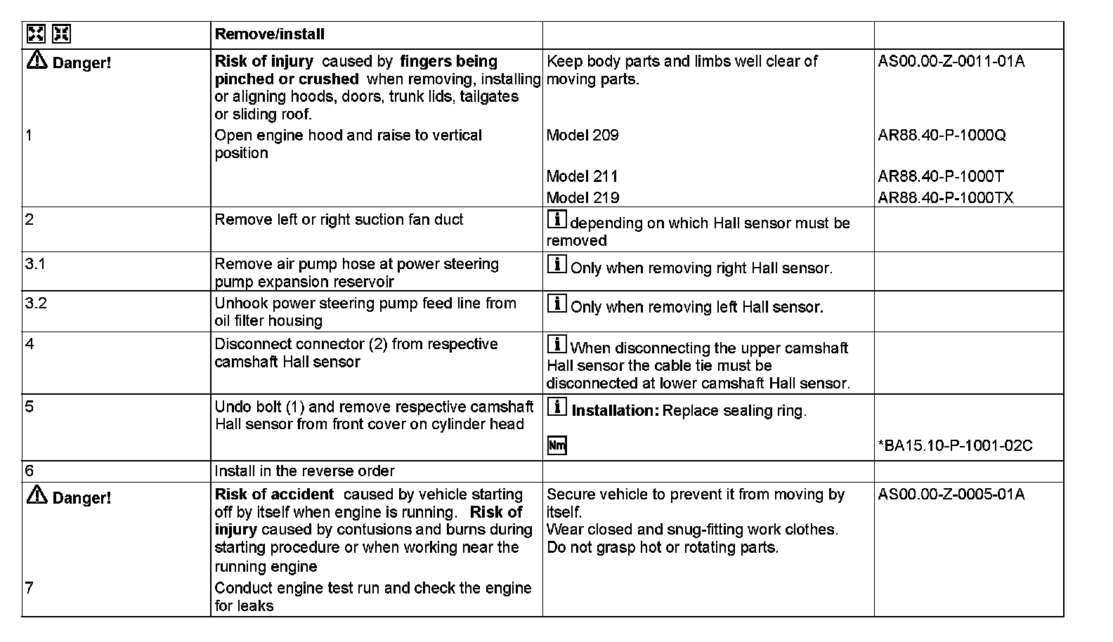 AR15.10-P-2000TMG Remove/install camshaft Hall sensor