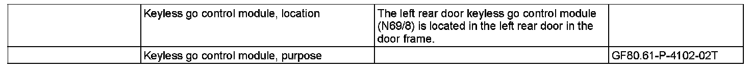 GF80.61-P-4105T Keyless Go Control Module, Location/Purpose