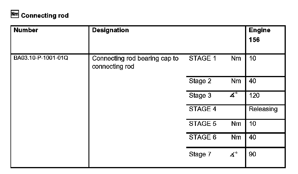 Test specifications for connecting rod bolts: