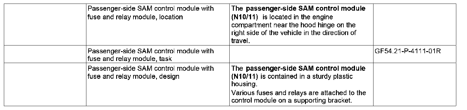 GF54.21-P-4111R Passenger-side SAM Control Module With Fuse And Relay Module, Location/task/ Design