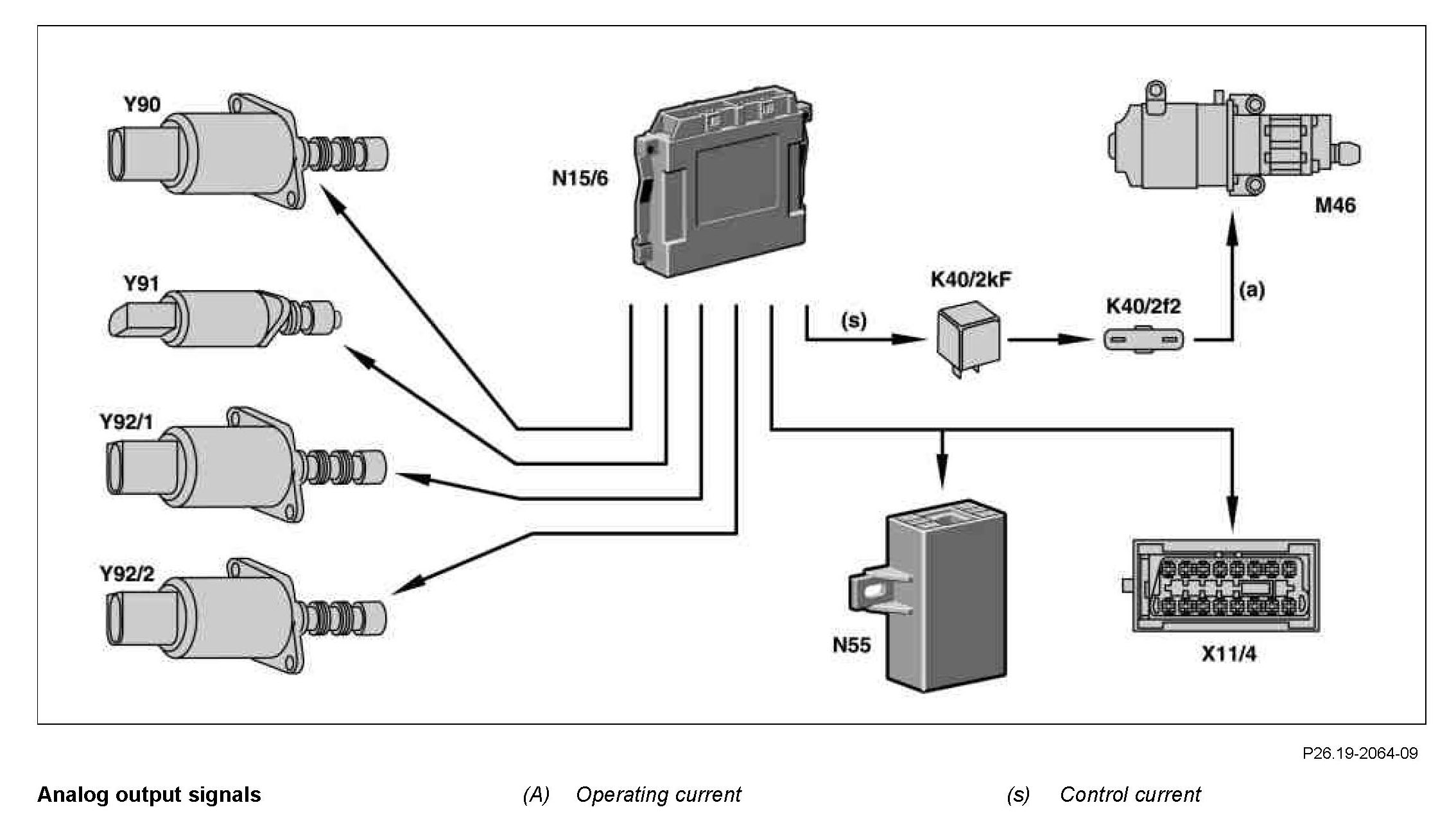 ^ Automated manual transmission hydraulic pump (M46) via the relay for the high pressure/return flow pump (K40/2kF), fused via fuse 2 (K40/2f2)