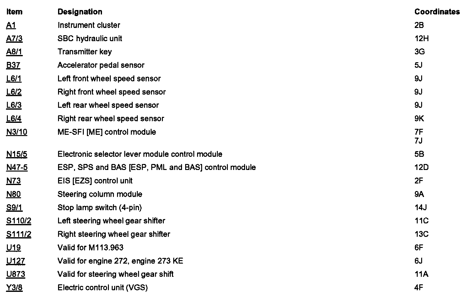 Component Locations: Component Location photographs can be found via their component names at the vehicle level. Component Locations