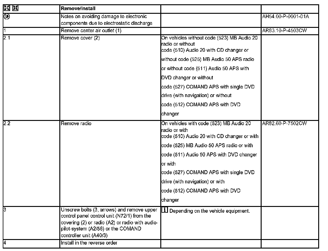 AR54.21-P-1262CW Remove/Install Upper Control Panel Control Unit