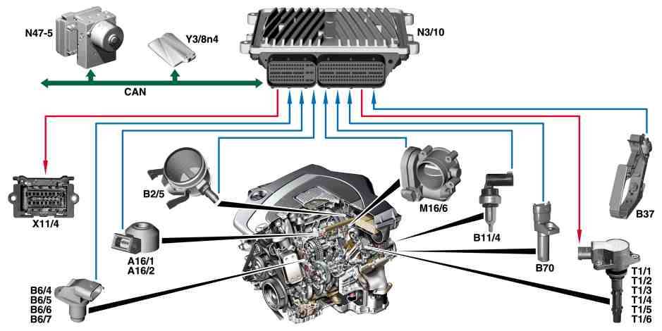 The ME-SFI control unit essentially analyzes the following signals for determining the ignition angle: