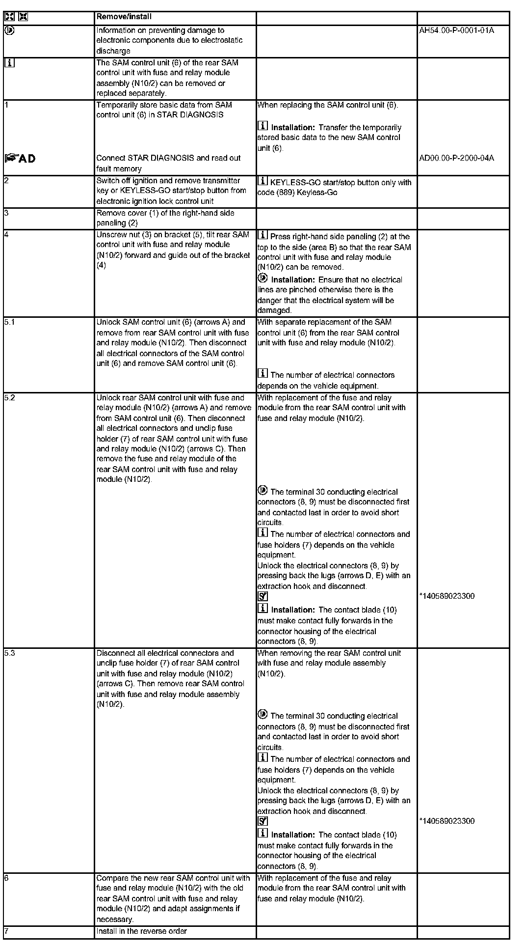 AR54.21-P-1258CW Remove/Install SAM Control Unit With Fuse And Relay Box In Trunk