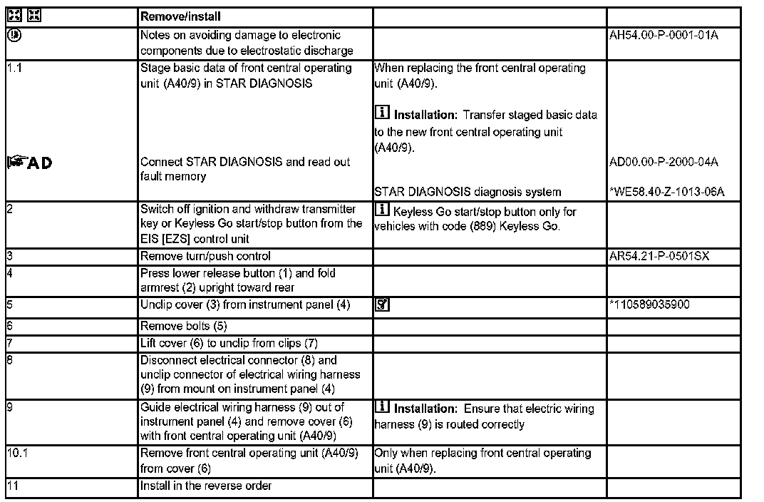 AR54.21-P-0500SC Remove/Install Front Central Operating Unit