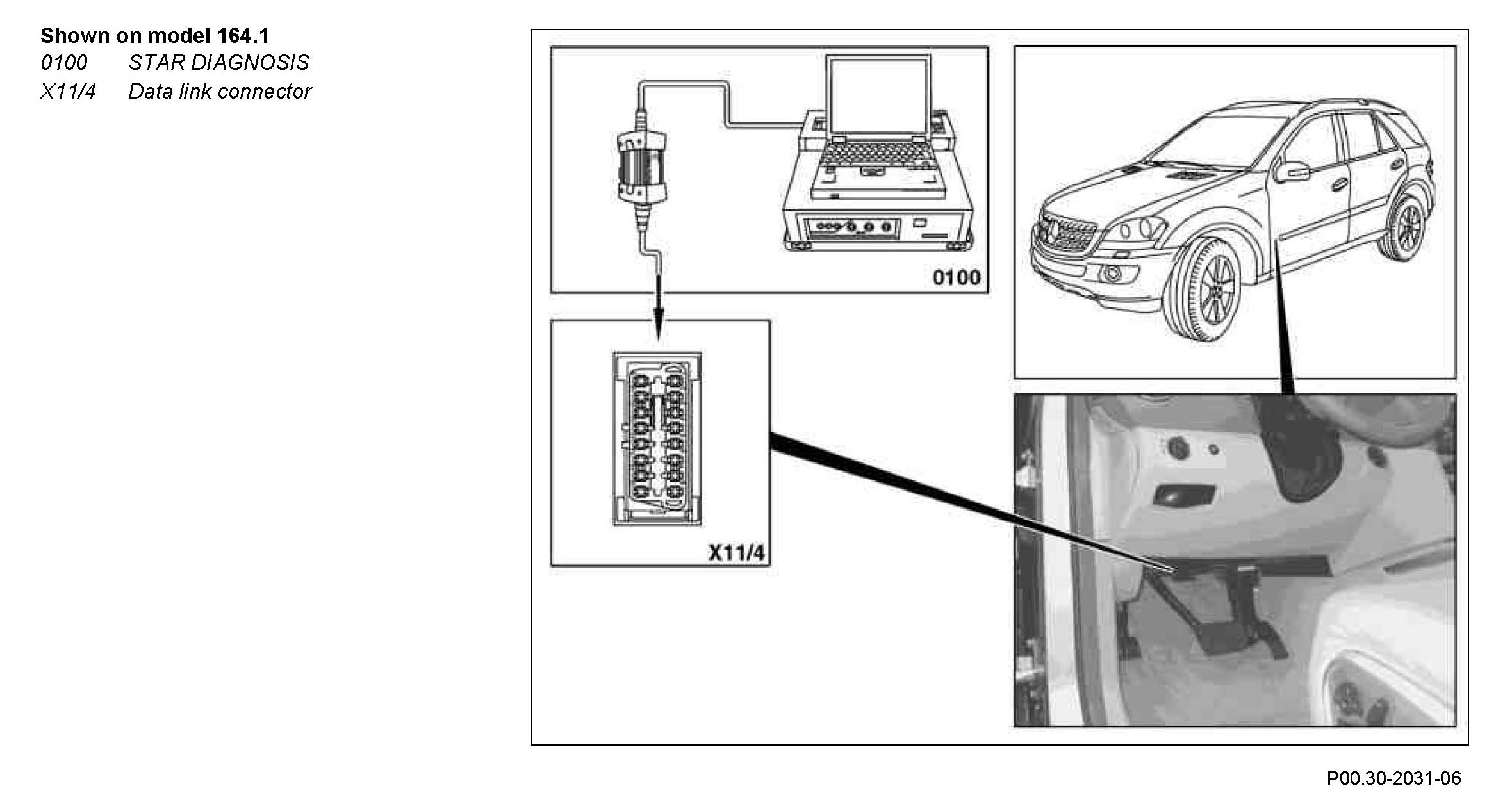 1 Connect STAR DIAGNOSIS (0100) to diagnostic socket, on the data link connector (X11/4) or on the data link connector (1.3) (X11/22).
