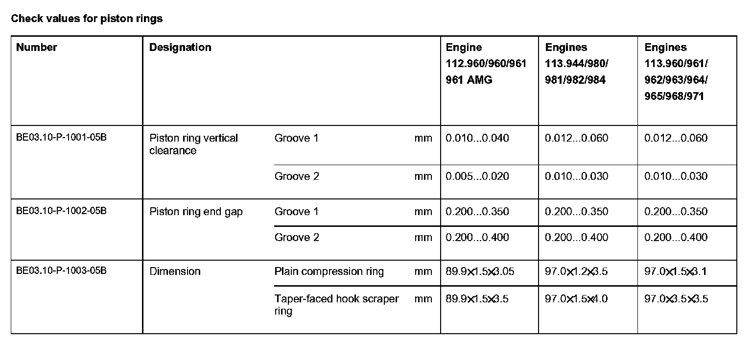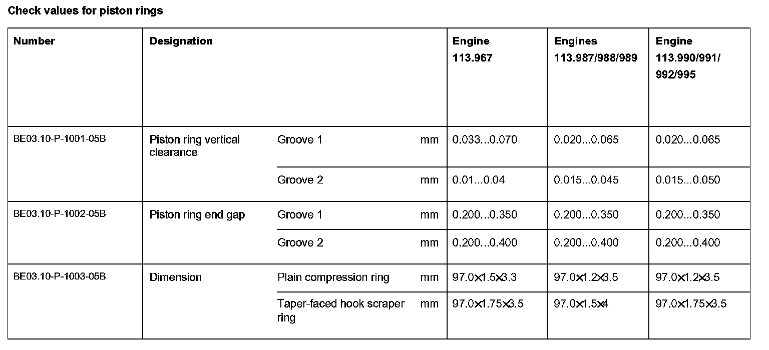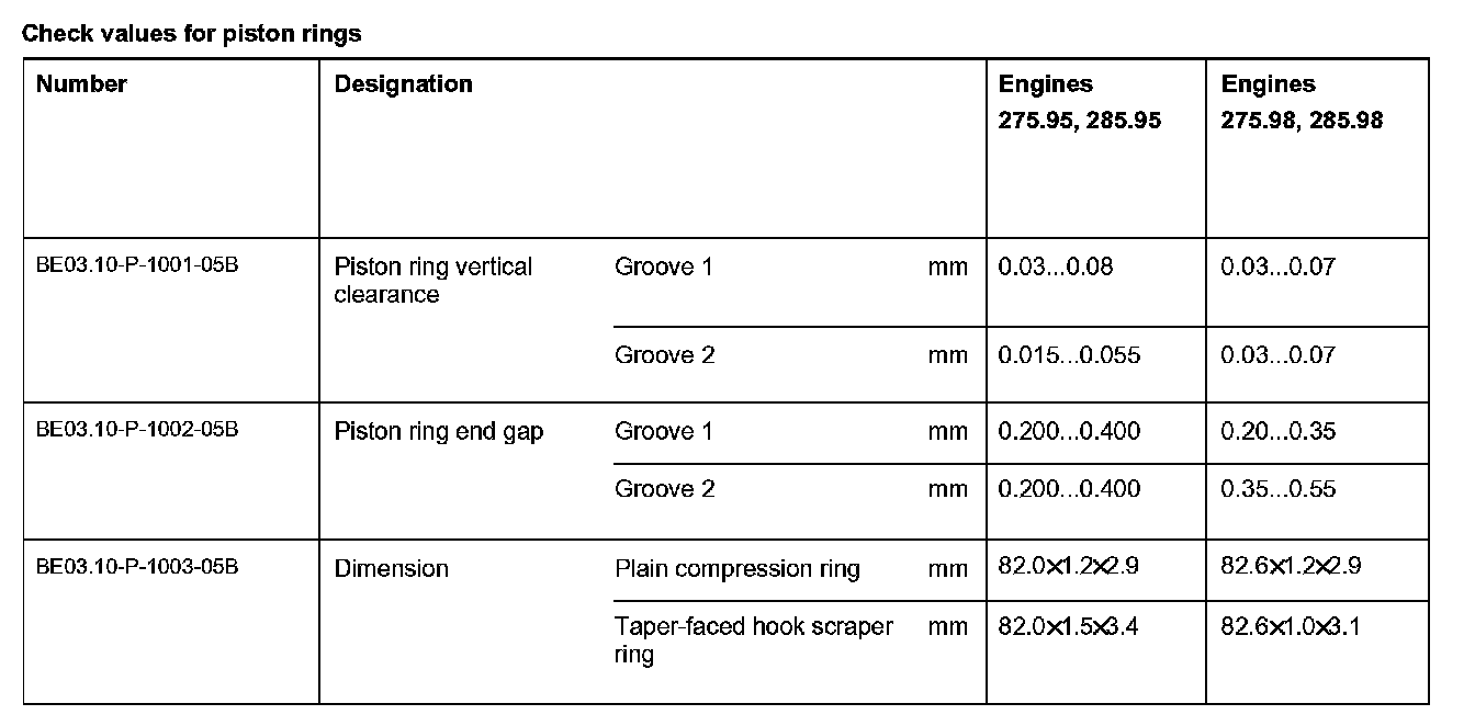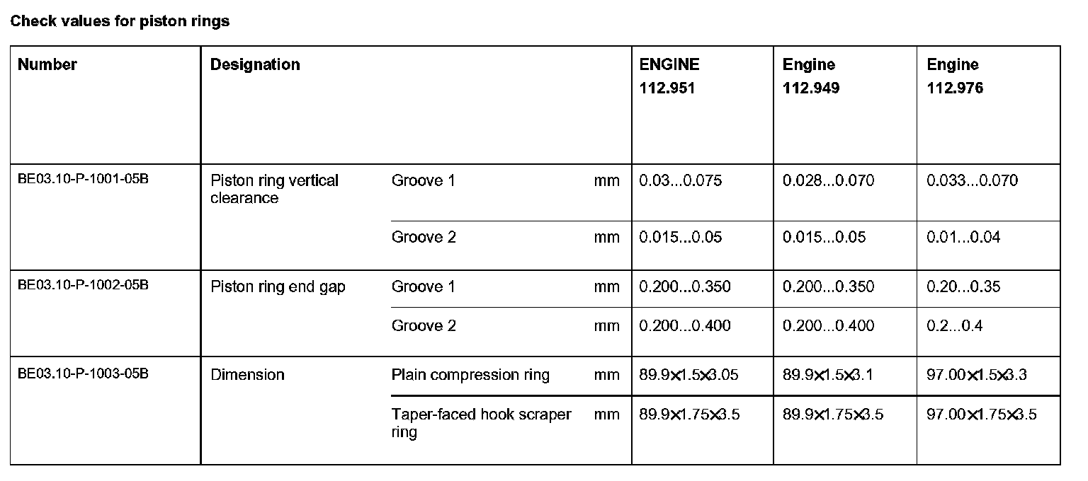 BE03.10-P-1000-05B Check values for piston ringsCheck values for piston rings: