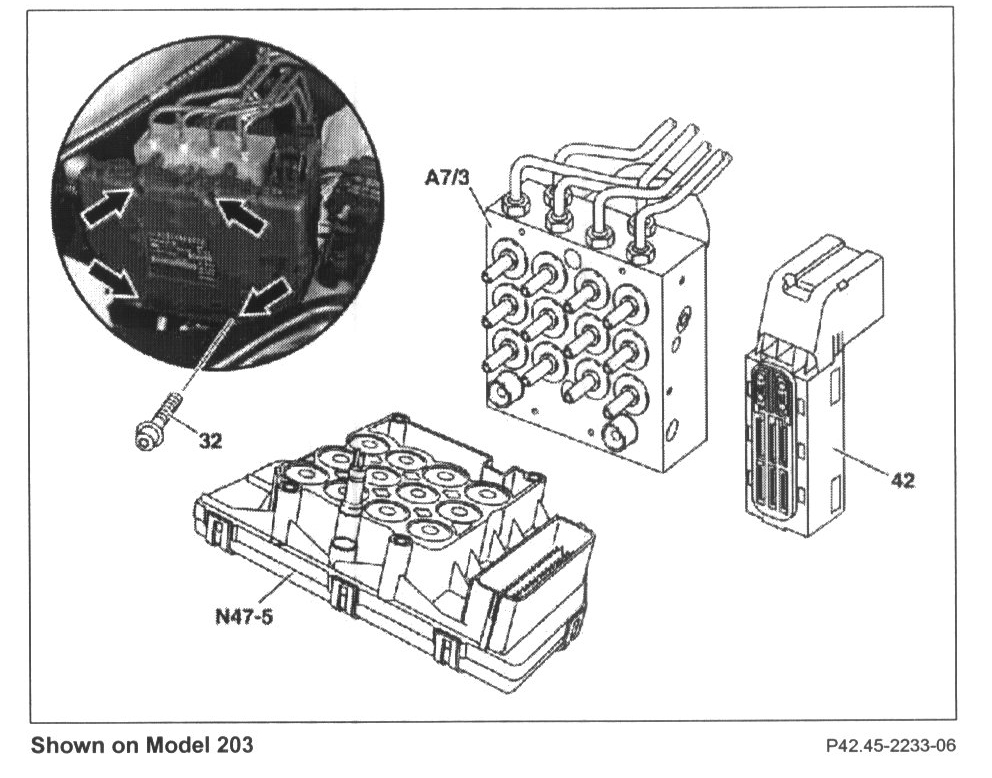 4 Remove ESP control module (N47/5) from the hydraulic unit (A7/3) from the front