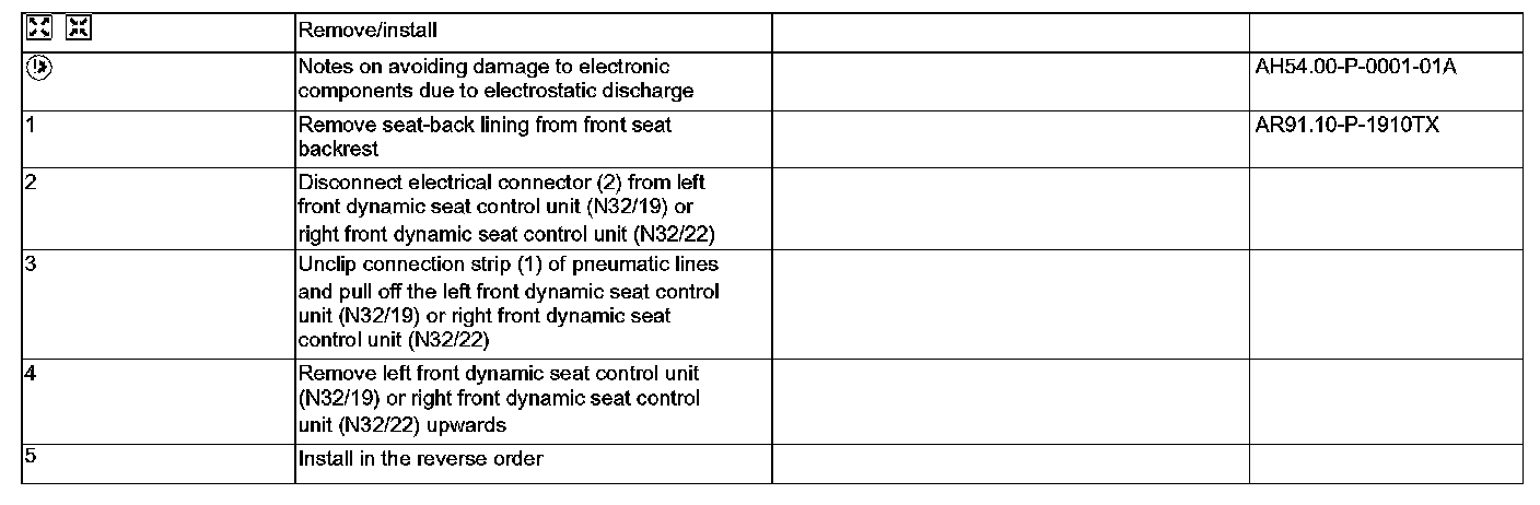 AR91.25-P-1800TX Remove/Install Dynamic Seat Control Unit