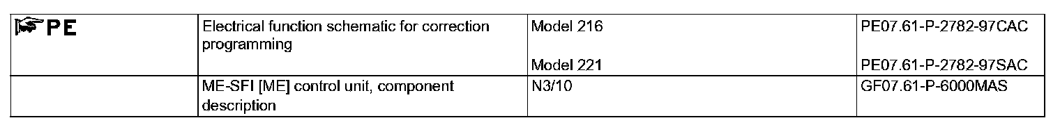 - Mixture maps for enrichment of the fuel/air mixture in different operating conditions (except code (494) USA version)