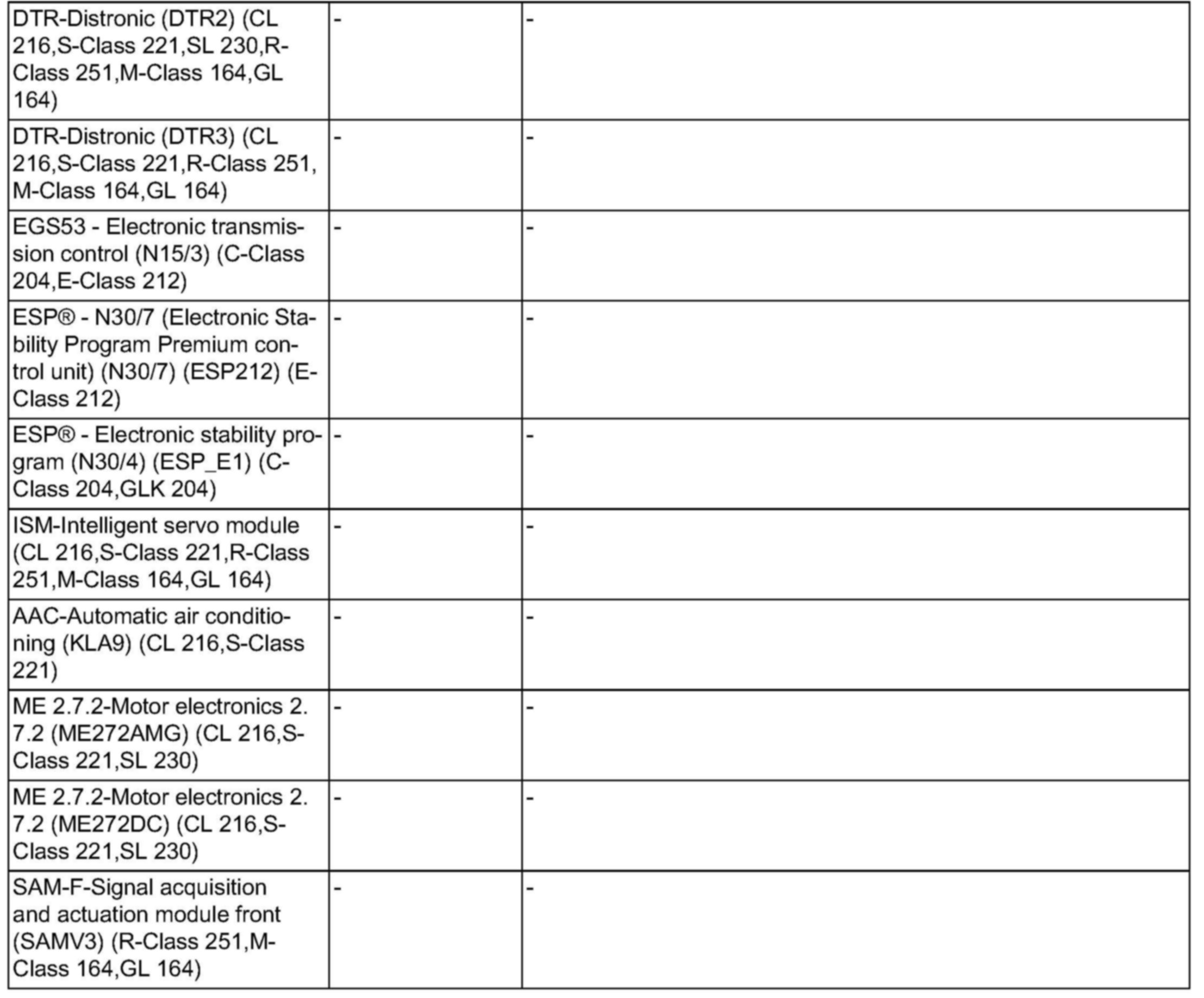 Control unit programming for software object numbers 164 442 17 00 and 164 442 33 00 reports: "No newer control unit software found".