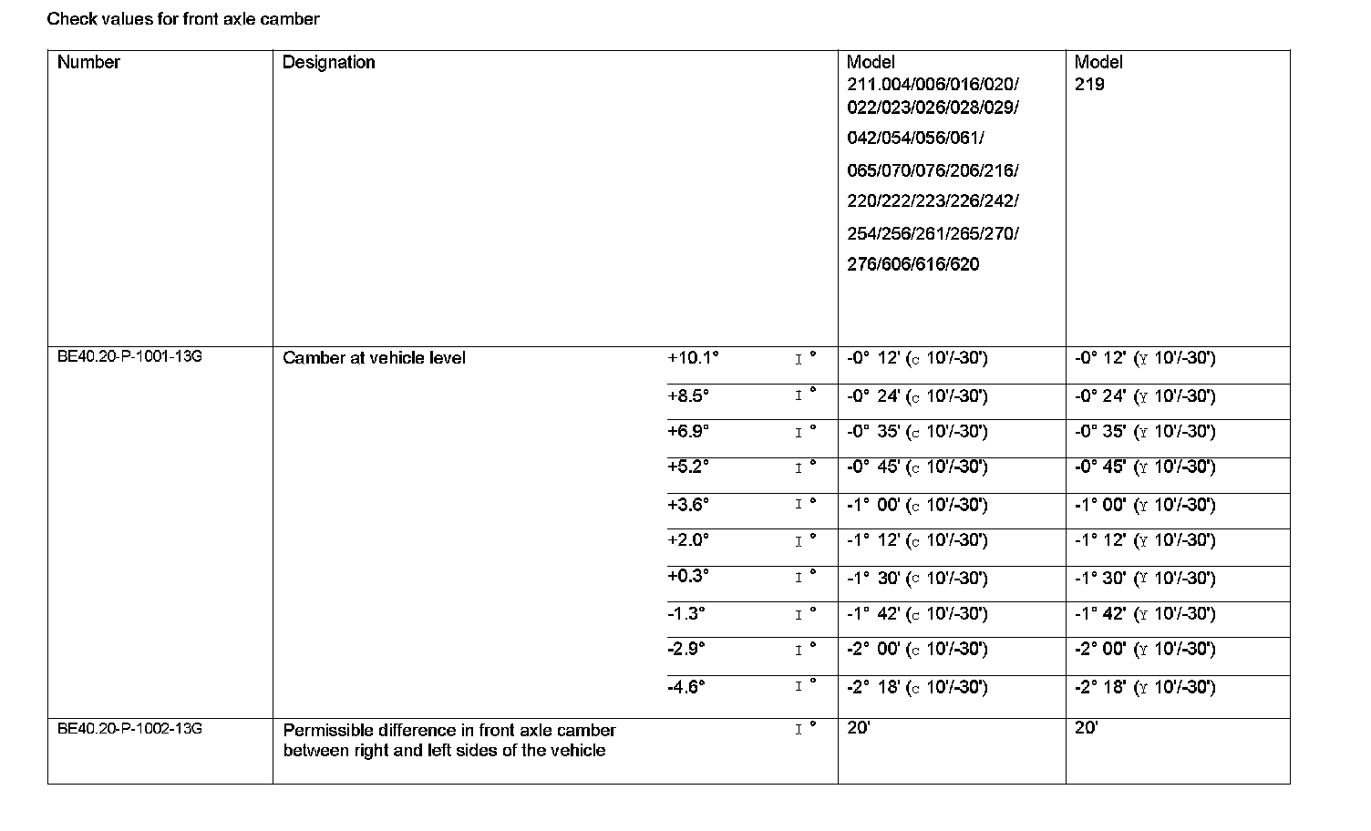BE40.20-P-1001-13G Check Values For Front Axle Camber