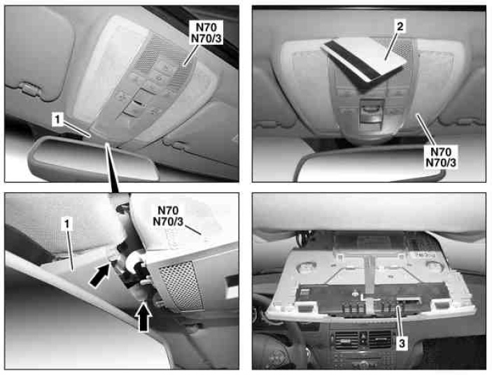 N70/3 Overhead control panel electronics (without code (414) Power glass tilting/sliding sunroof)