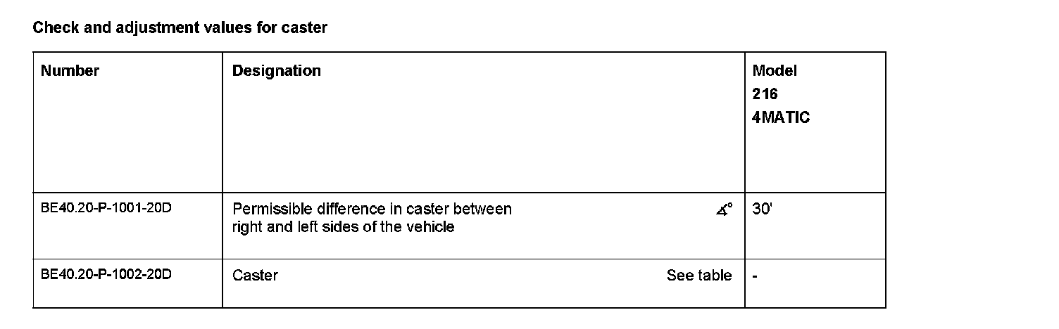 Check and adjustment values for caster:
