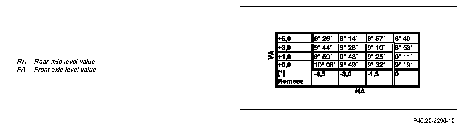 Front axle level value (FA): +3.0 degrees