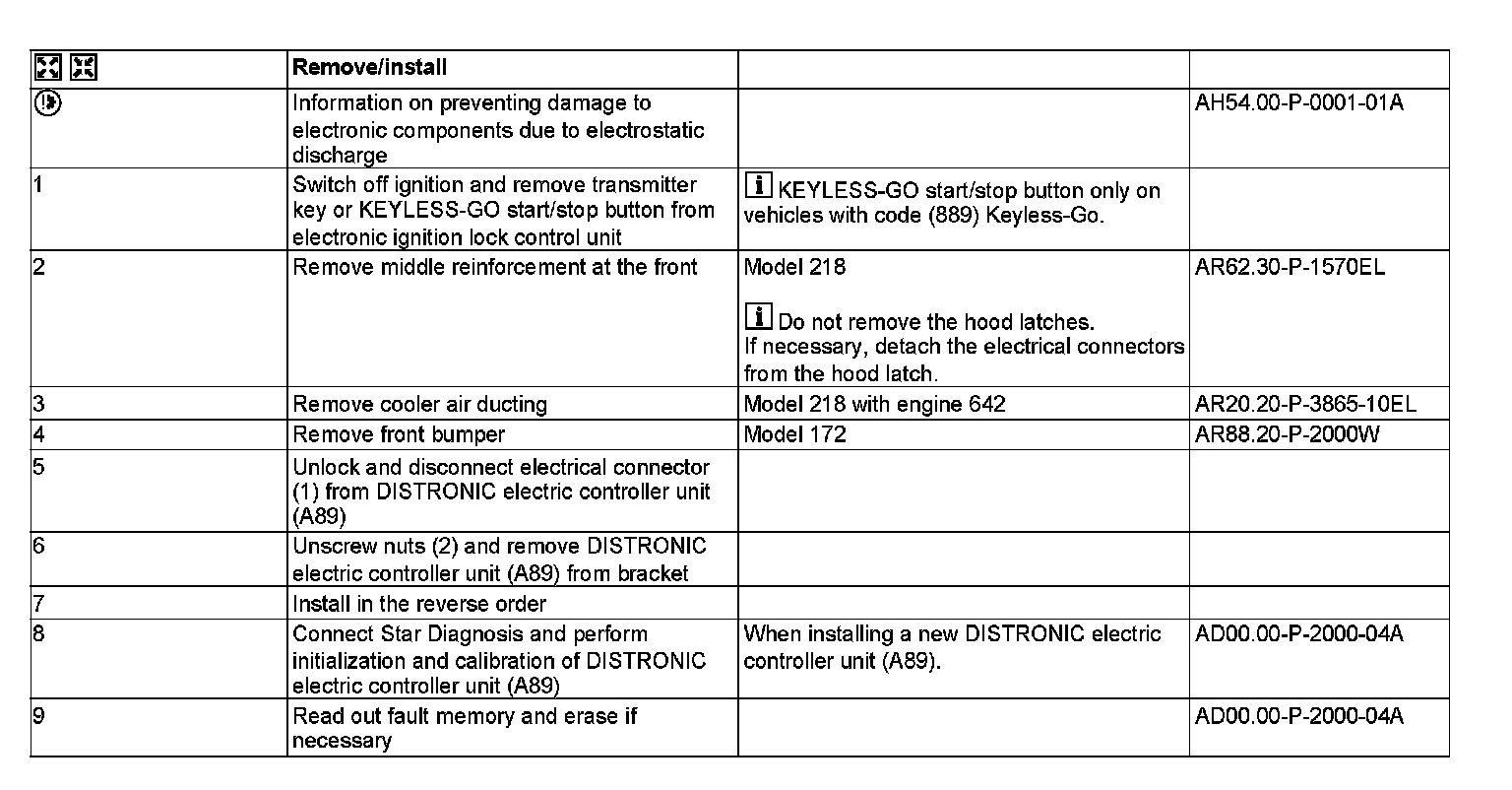 AR30.30-P-1010EL Remove/Install Distronic Sensor (DTR)