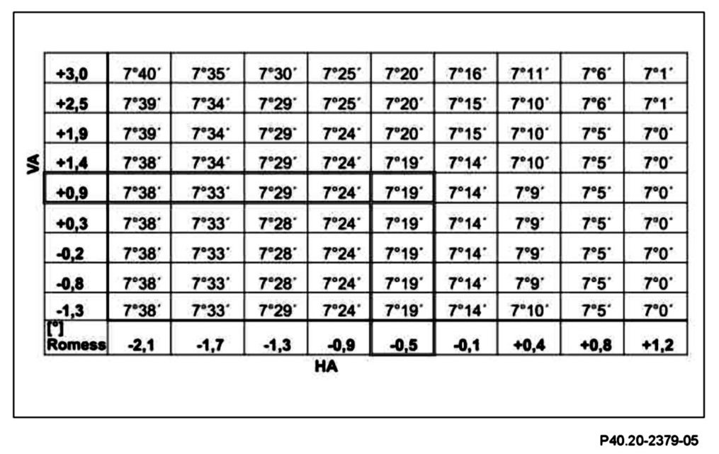 Front axle level value (FA): +0.9°
