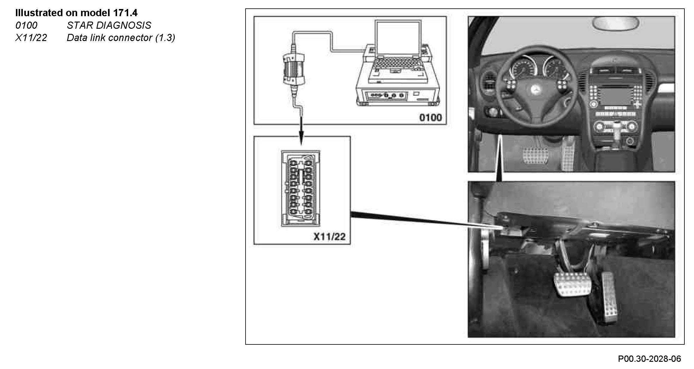 1 Connect STAR DIAGNOSIS (0100) to diagnostic socket, on the data link connector (X11/4) or on the data link connector (1.3) (X11/22).