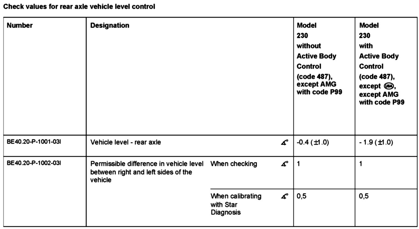Vehicle Level - Rear Axle