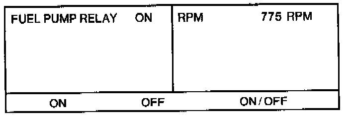The Fuel Pump Relay can be set to ON, OFF or ON/OFF (relay is repeatedly cycled on and off in 3 second intervals) by pressing the number key 3, 5 or 7. Engine RPM is displayed. When this test is completed, press CANCEL to return to Screen Display # 16. Turn the menu dial to highlight EGR CONTROL SOLENOID. Press TRIGGER. Screen Display #24 will appear.