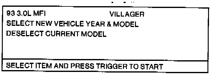 93 3.0L MFI VILLAGER will be the first item on this screen, and it will be highlighted. Press TRIGGER. Screen Display #6 will appear.