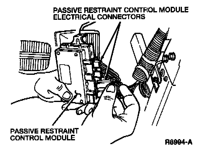 5. Disconnect the passive restraint control module electrical connectors.