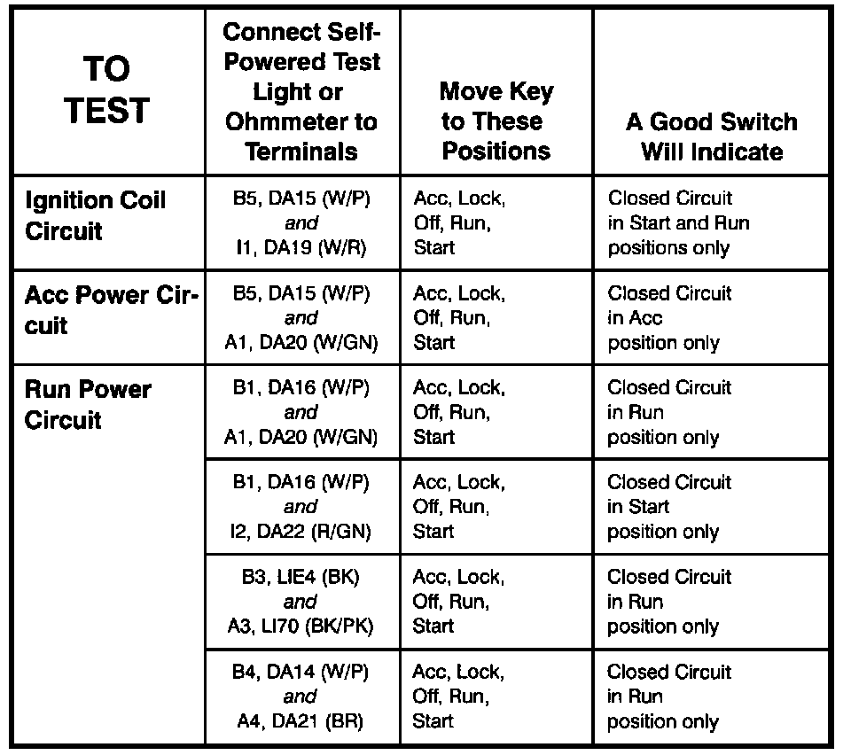 Ignition Switch - Component Testing Procedure: