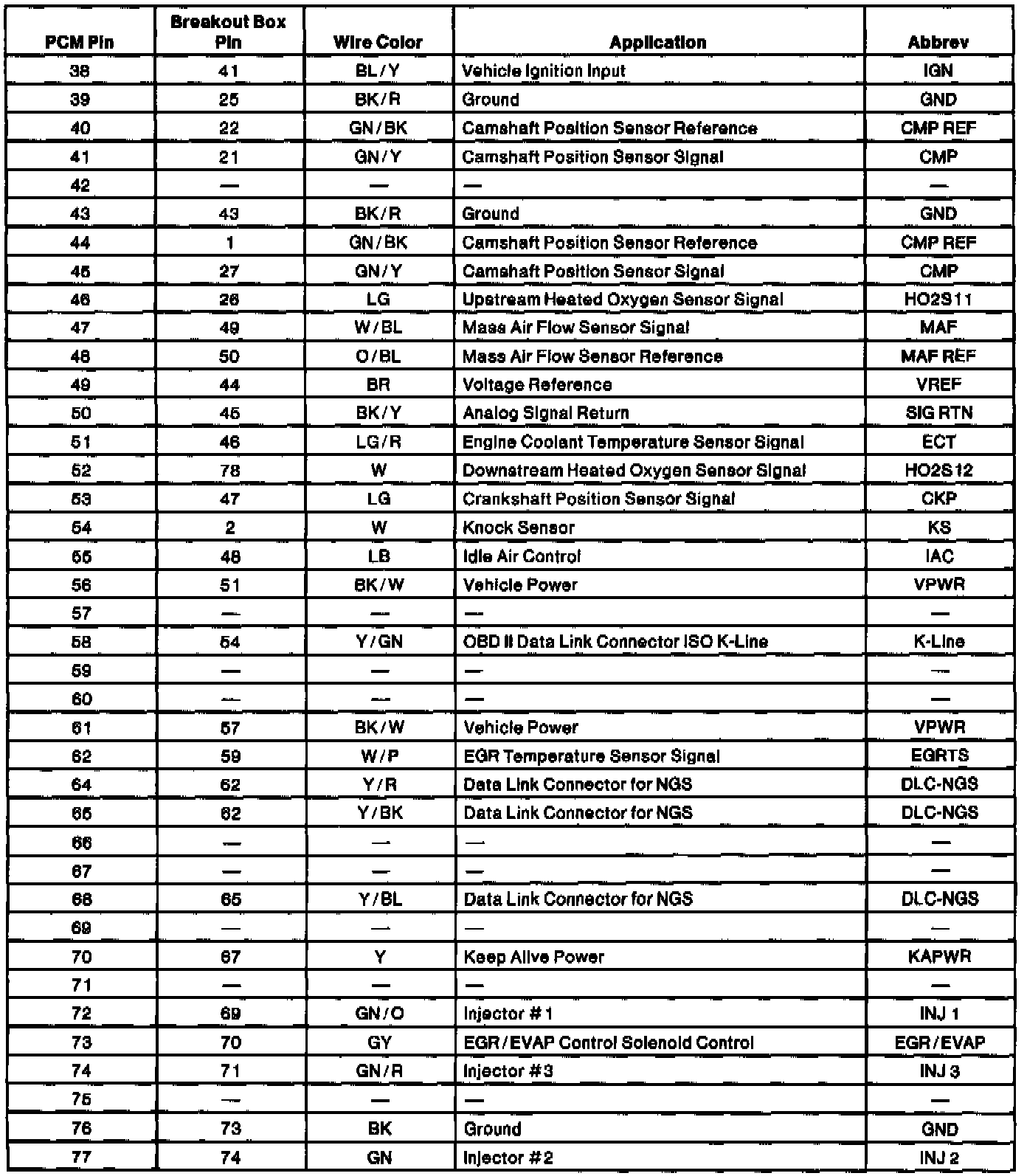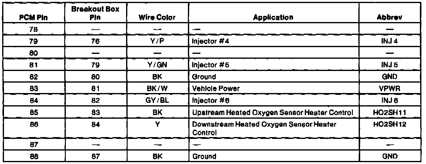 Powertrain Control Module (PCM) Connector Pin Usage (Part 2):