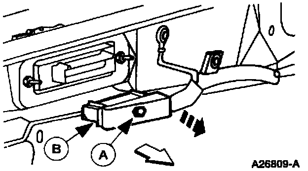 2. Loosen the (A) bolt and unplug the (B) Powertrain Control Module (PCM) connector.