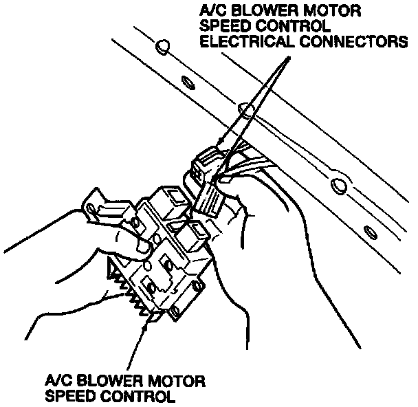 2. Disconnect the two A/C blower motor speed control electrical connectors.