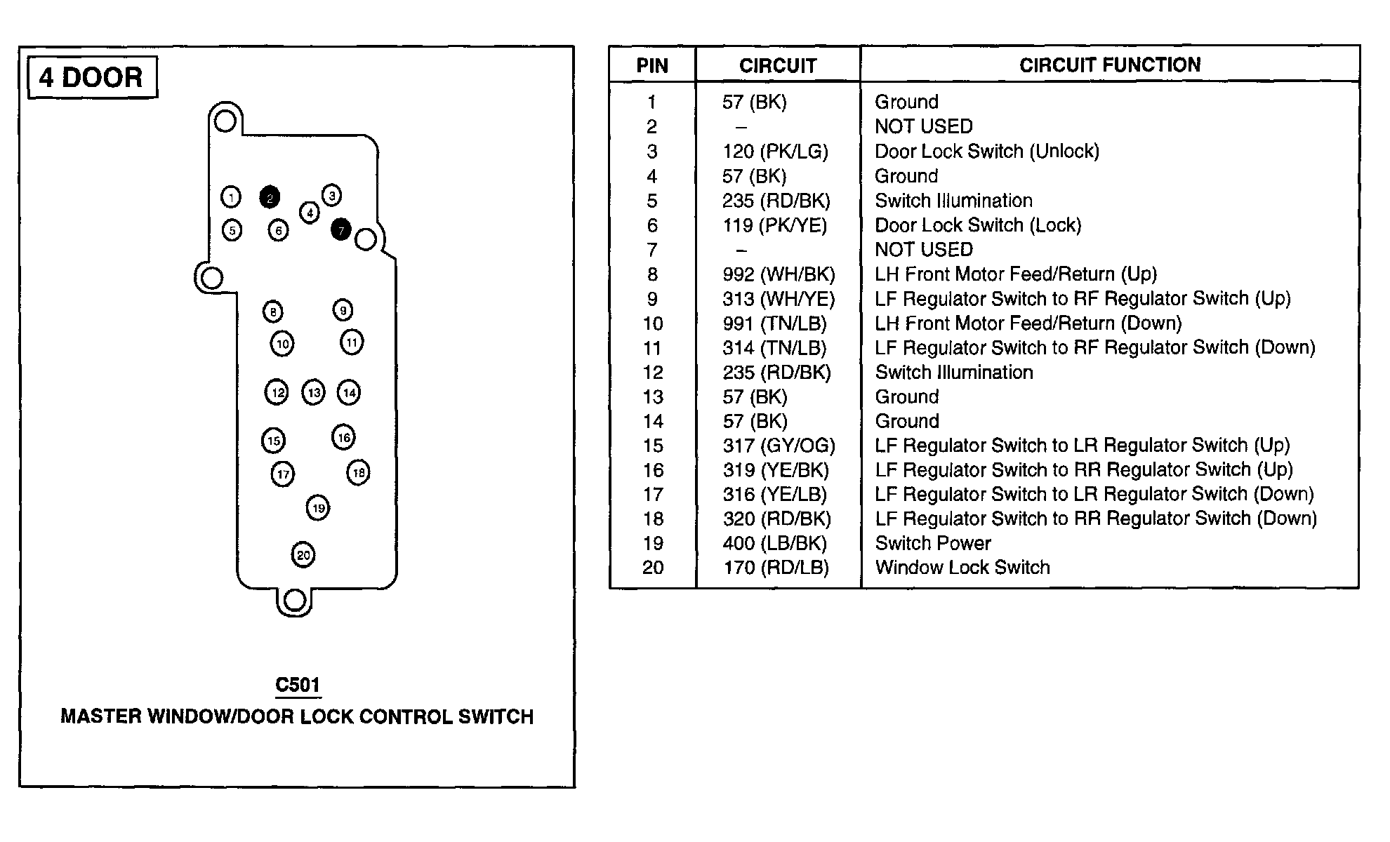 Master Window/Door Lock Control Switch