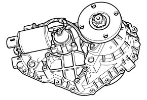 The electric shift motor is mounted externally at the rear of the transfer case. It drives a rotary cam which moves the mode fork and range fork within the transfer case between the HIGH range (A4WD 4HIGH) and LOW range positions.
