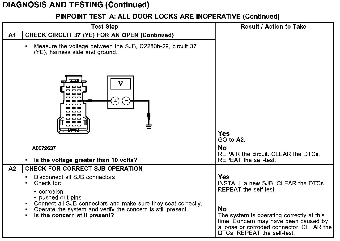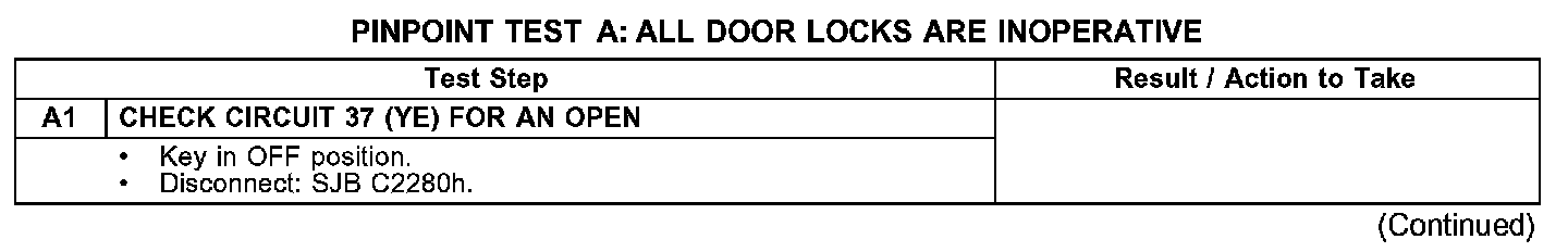 PINPOINT TEST A: ALL DOOR LOCKS ARE INOPERATIVETest A1: