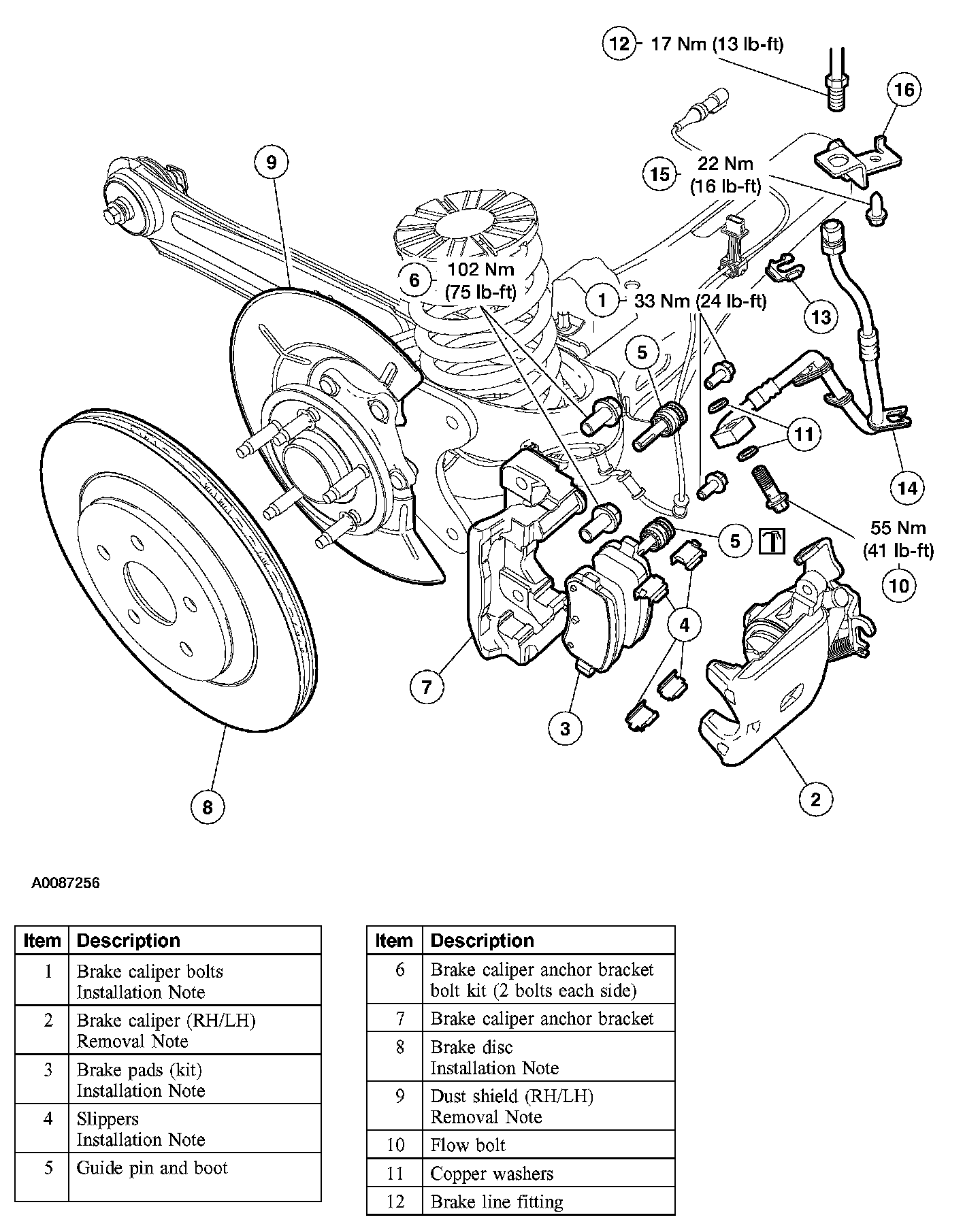 Item 1: Brake Caliper Bolt Installation Note