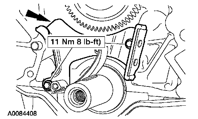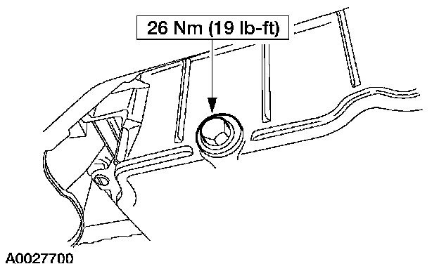 5. Install the two oil pan bolts and tighten to 10 Nm (89 inch lbs.).