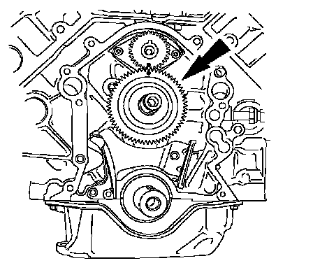 4. Turn the camshaft gear so that the timing mark is on the bottom of the balance shaft.