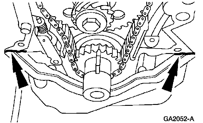 3. Install the engine front cover gasket and apply a small amount of silicone gasket and sealant as shown.