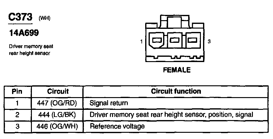 Driver Memory Seat Rear Height Sensor